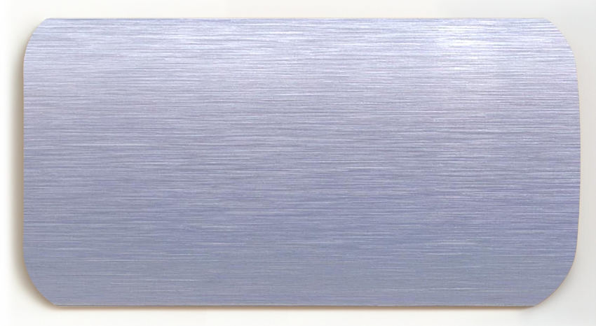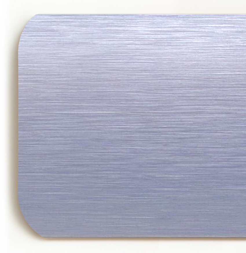 Diese Jalousie hat eine gebürstete, metallisch glänzende Oberfläche mit leichtem Blauton.
